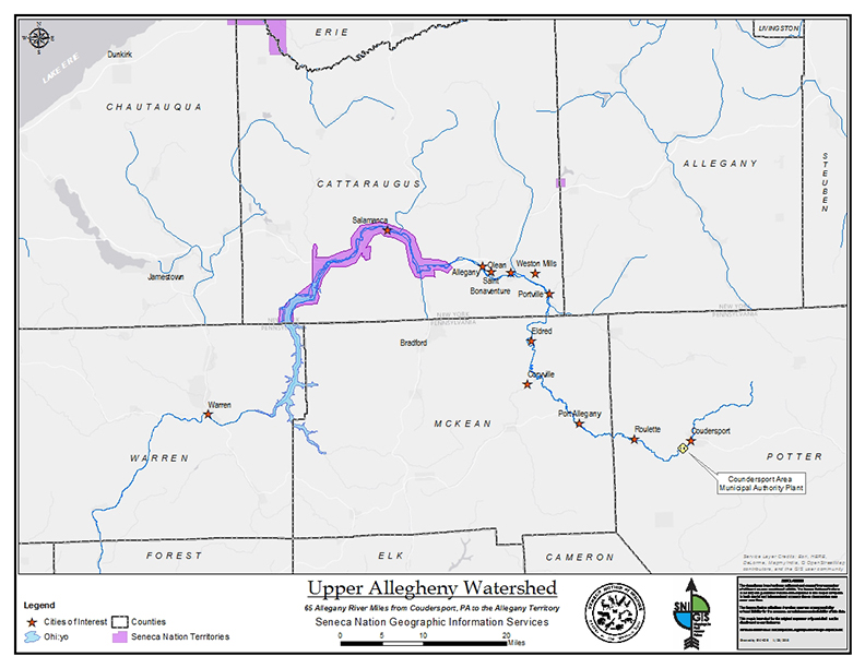 ALLEGANY TERRITORY, SALAMANCA, N.Y. – The Seneca Nation is calling upon the Pennsylvania Department of Environmental Protection (PA DEP) to reject permit applications for a destructive water quality management and discharge plan at the headwaters of the Allegheny River that would have severe impacts on the Nation’s Allegany Territory, located 65 miles downstream from the project.